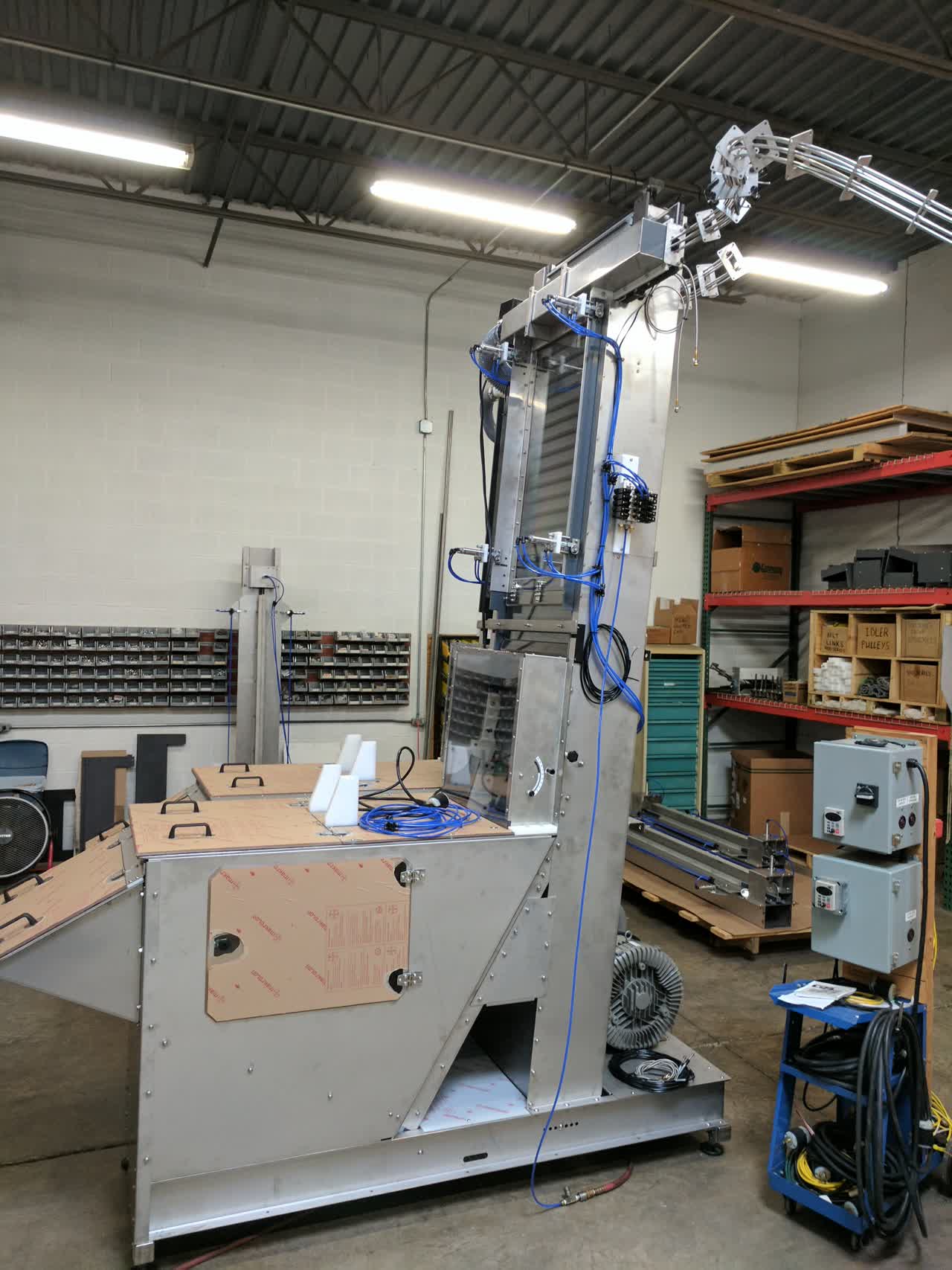 Small footprint dual sorter with rapid hopper empty, auto-adjusting belt cover, and reduced height load stations.